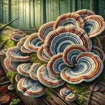 Гриб Хвіст Індички (Turkey Tail Mushroom) – це один з найбільш відомих і досліджених лікарських грибів, який використовується в традиційній медицині протягом століть, завдяки своїм потужним цілющим властивостям. Його наукова назва – Trametes versicolor, а в народі він отримав таку назву через схожість свого вигляду з хвостом індички. Це жовтувато-коричневий гриб, що росте на деревині, з характерними багатокольоровими смужками.
