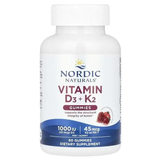 Nordic Naturals, Витамин D3 K2 Гранат, Vitamin D3 + K2, 60 конфет