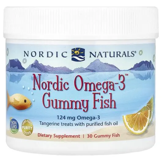 Nordic Omega-3 Gummy Fish Tangerine Treats 124 mg, Омега 3, 30 Gummy Fish