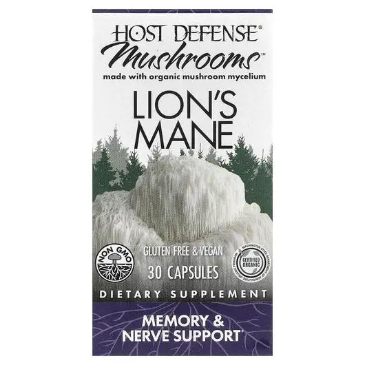 Host Defense Mushrooms, Грибы Львиная грива, Lion's Mane, 30 капсул