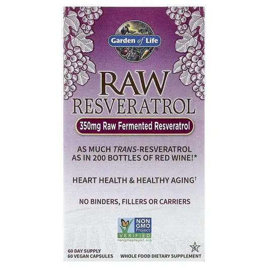 Garden of Life, Ресвератрол, RAW Resveratrol 350 mg, 60 капсул