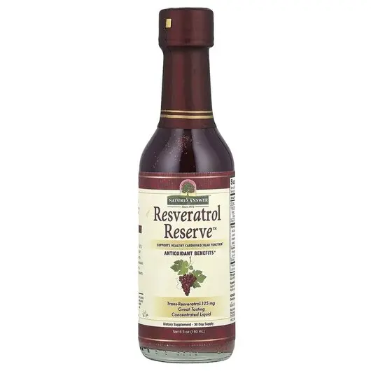 Ресвератрол Reserve от Nature's Answer — это самый технологически продвинутый ресвератрол, доступный на рынке. Мы используем только самые чистые ингредиенты. Nature's Answer, пионер в производстве травяных экстрактов, с 1972 года продолжает устанавливать отраслевой стандарт жидких экстрактов высшего качества. Мы комбинируем наиболее биоактивную, высокоочищенную форму ресвератрола, транс-ресвератрол с чистотой 99%, вместе с другими восхитительными суперфруктами, чтобы предоставить ресвератрол высшего качества, доступный на рынке: Resveratrol Reserve! Ресвератрол — это химический компонент, выделенный из винограда, красного вина, черники, красных ягод и горца японского. Мускадин — это сорт винограда (плоды), который, как известно, имеет самую высокую концентрацию эллаговой кислоты и антоцианов. Nature's Answer получает только свежий цельный мускатный виноград (плоды) на собственном ультрасовременном экстракционном предприятии в США, чтобы предоставить экстракт высочайшего качества. Ресвератрол вызвал ажиотаж в научном сообществе. Resveratrol Reserve от Nature's Answer суперконцентрирован, поэтому вы можете ощутить его пользу для здоровья. Одна чайная ложка (5 мл) содержит 125 мг транс-ресвератрола.
