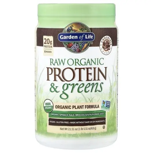 Органический протеин, RAW Protein & Greens Chocolate, 610 г