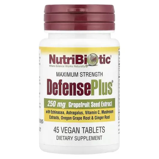 Таблетки DefensePlus от NutriBiotic — это уникальная формула, сочетающая экстракт семян грейпфрута, витамин С, экстракт эхинацеи, астрагал, экстракт корня имбиря, корень магонии, экстракт тысячелистника обыкновенного, цинк и экстракты грибов рейши, гриба-барана и шиитаке, которые используются в медицине по всему миру.