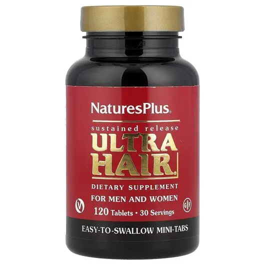 Пусть каждые день будет хорошим для волос с мини-таблетками Ultra Hair от Nature's Plus! Легко проглатываемые мини-таблетки Ultra Hair содержат мощный комплекс витаминов группы B, 500 мг пантотеновой кислоты, 2000 мкг биотина и 400 мкг фолиевой кислоты. В состав мини-таблеткок Ultra Hair также входят 100 мг L-цистеина, а также эффективные витамины А (в виде бета-каротина) и C (для синергетической поддержки). Эта точно откалиброванная смесь питательных веществ в сочетании с микрогелевой системой длительного высвобождения и специальной основой для постепенного высвобождения ингредиентов в течении долгого периода времени на 40% лучше всасывается и усваивается организмом.