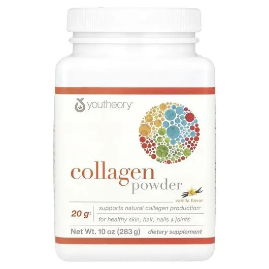 Коллагеновый порошок Youtheory помогает противодействовать возрастной потере коллагена. Этот удобный и простой в использовании продукт содержит 6000 мг гидролизованного коллагена, который способствует пополнению запасов незаменимых протеинов для красоты, одновременно обеспечивая мощную пользу для здоровья. Эта формула обогащена витамином С, который способствует выработке внутреннего коллагена, и биотином для поддержания здоровья. & факторы красоты.