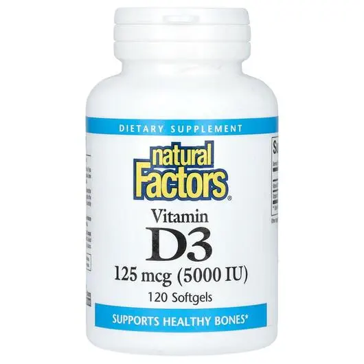 Vitamin D3 5000 IU, Натуральные Факторы Витамин D3 5000 IU, 120 Softгeлs