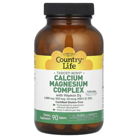 Кальций Магний Витамин D3 Calcium Magnesium Complex 90 таблеток, Country Life