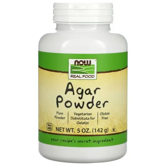 Агар - это натуральный порошок с желирующими свойствами, получаемый из морских водорослей. Это идеальная вегетарианская замена желатину, получаемому из говядины, в любых рецептах, а также он является превосходным загустителем для супов, желе, мороженого и многого другого.
