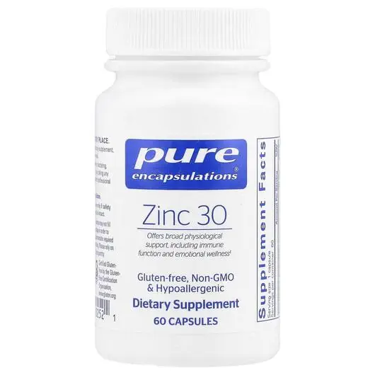 Pure Encapsulations, Цинк пиколинат 30 мг, Zinc 30 mg, 60 капсул