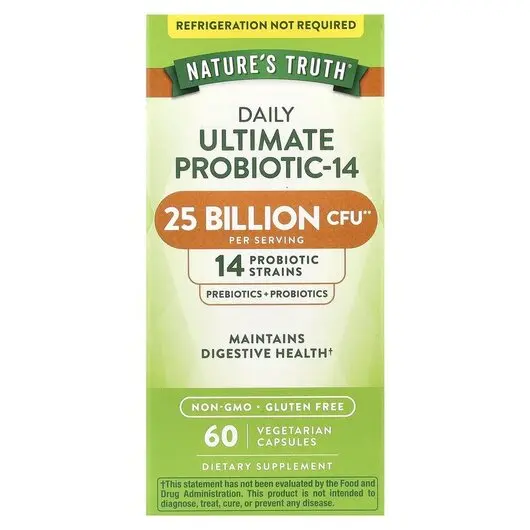 Пробиотики помогают поддерживать здоровый баланс кишечной флоры и общее состояние пищеварительной системы. Ultimate Probiotic-14 от Nature's Truth специально разработан для обеспечения мощного и сбалансированного спектра полезных бактерий, обитающих в кишечнике.