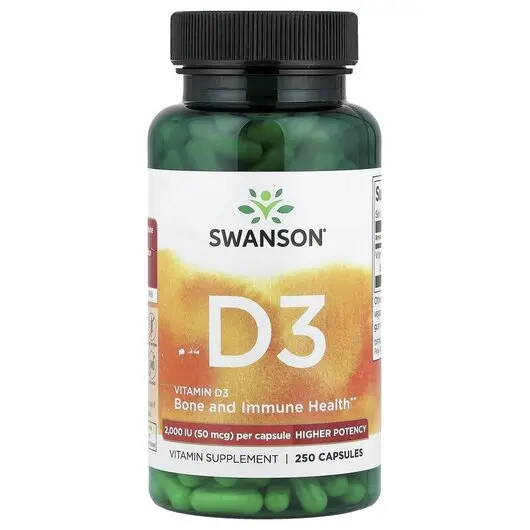 Ваше тело действительно вырабатывает витамин D, когда кожа подвергается воздействию солнечного света. Тем не менее, для тех, кто мало или совсем не проводит время на солнце, добавки с витамином D могут быть полезны. В особенности известно, что у пожилых людей низкий уровень витамина D. Получите свой «солнечный витамин» с витамином D3 высокой эффективности Swanson! Эта уникальная формула получила много отзывов исследователей и специалистов в области здравоохранения. Он наиболее известен тем, что способствует укреплению костей, иммунитета и эмоционального здоровья. Наша мощная формула содержит 2000 МЕ витамина D3 на капсулу.