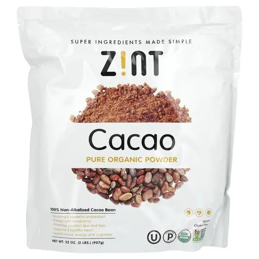 Zint, Какао Порошок, Raw Organic Cacao Powder, 907 г