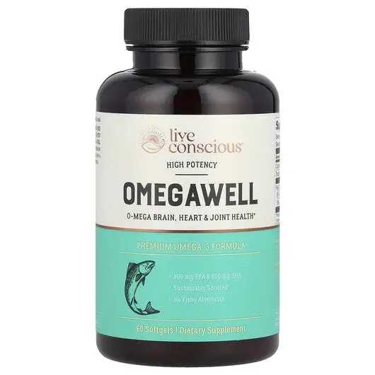 Live Conscious, Омега 3, OmegaWell High Potency, 60 капсул