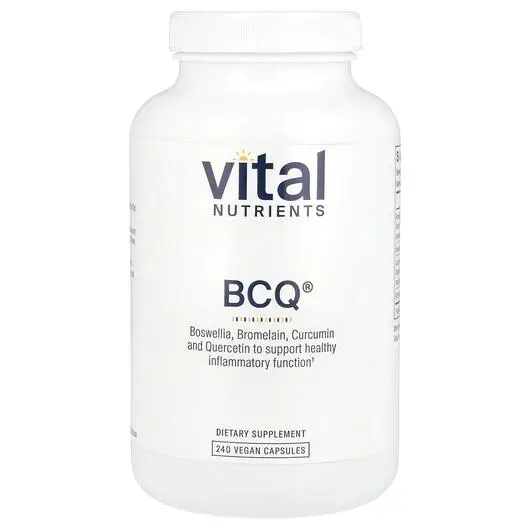 BCQ сочетает в себе экстракты босвеллии и куркумина с кверцетином, мощным флавоноидом, и бромелаином, протеолитическим ферментом, полученным из растения ананас. Эта мощная формула содержит антиоксиданты и может помочь снизить уровень вещества P в организме. Кроме того, BCQ поддерживает здоровую воспалительную реакцию, что может помочь уменьшить незначительную боль. Питательные вещества в этой уникальной формуле также поддерживают работу желудочно-кишечного тракта и помогают поддерживать здоровье соединительной ткани.