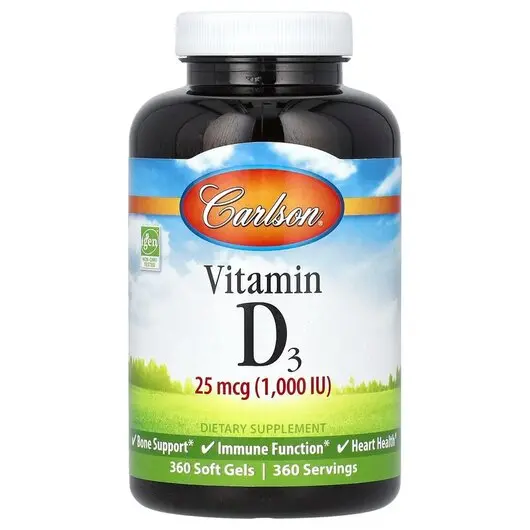 Витамин D3 Vitamin D3 25 mcg 1000 IU 360 капсул, Carlson