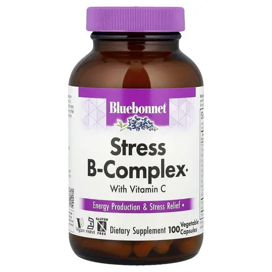 Капсулы Stress B-Complex от Bluebonnet содержат полный спектр высокоэффективных витаминов группы B в их самой чистой форме, а также витамин C из L-аскорбиновой кислоты. Выпускается в удобных для глотания растительных капсулах для максимального всасывания и усвоения.