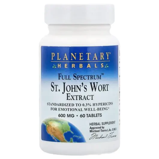 Зверобой стал одним из основных растений, используемых для поддержания психического здоровья. Экстракт зверобоя от Planetary Herbals Full Spectrum сочетает в себе экстракт, стандартизованный до гиперицинов, и экстракт надземных частей зверобоя. Каждая таблетка содержит минимум 1,5 мг гиперицина.