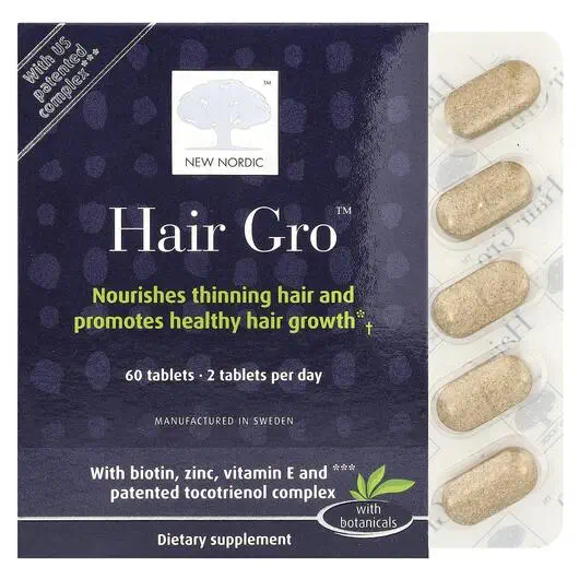 Кожа ногти волосы Hair Gro 60 капсул, New Nordic