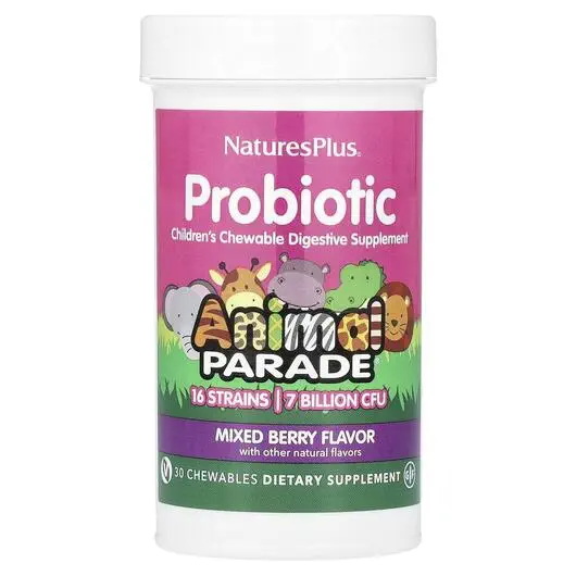 Natures Plus, Пробиотики для детей, Animal Parade Probiotic, 30 конфет