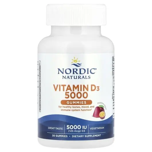 Витамин D3 5000 в жевательных таблетках обеспечивает проактивную дозу натуральной, наиболее легко усваиваемой и усваиваемой формы витамина D (холекальциферола). Всего одна вкусная жевательная мармеладка со вкусом маракуйи превосходит суточную норму витамина D, помогает корректировать его недостаточный уровень и обеспечивает подтвержденную исследованиями поддержку иммунного здоровья, прочности костей и хорошего настроения.