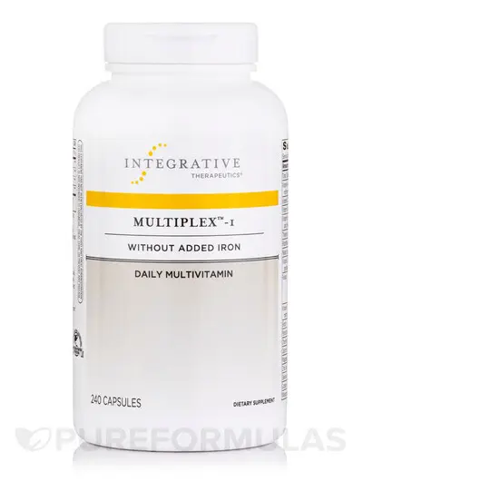 Принимайте две или три капсулы Multiplex I без железа от Integrative Therapeutics два раза в день во время еды, если ваш врач не посоветовал иное. Флакона на 240 капсул хватит примерно на 40 дней, в зависимости от вашей дозировки. Этот продукт не содержит искусственных красителей и ароматизаторов, сахара, молочных продуктов или глютена.