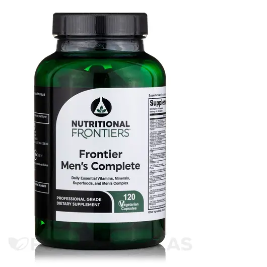 Frontier Men's Complete содержит важные антиоксидантные витамины A, C и E, ряд витаминов группы B, легкоусвояемый кальций и магний, а также полный спектр биодоступных минералов и микроэлементов под торговой маркой TRAACS. Frontier Men's Complete также содержит полезные добавки, такие как холин, CoQ10, Lutemax, ликопин, порошок красной свеклы, DMG, пальметто и суперпищевую смесь.
