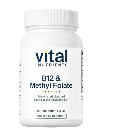 B-12/фолат (1000 мкг/800 мкг) от Vital Nutrients обеспечивает полезные дозы витамина B12 и фолиевой кислоты в удобной капсуле для ежедневного приема.