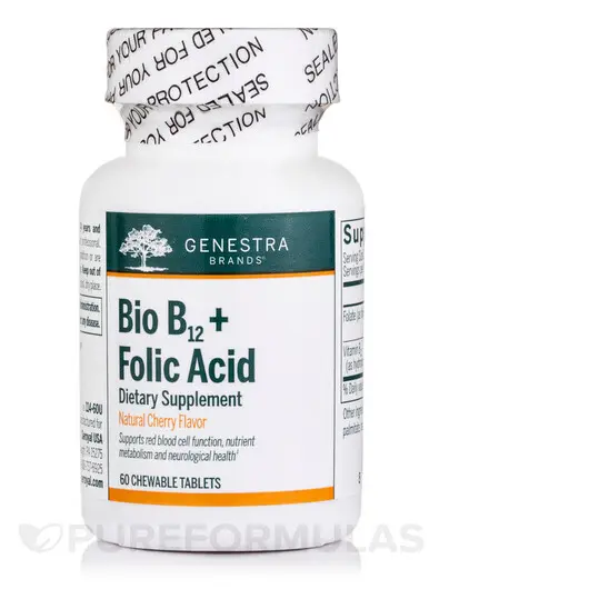 Genestra, Витамин B12 Кобаламин, Bio B12 + Folic Acid, 60 таблеток