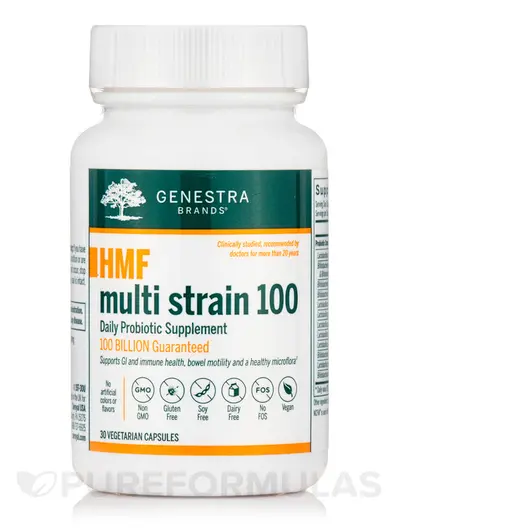 Genestra, Пробиотики, HMF Multi Strain 100, 30 капсул