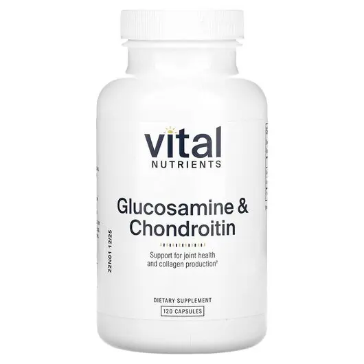 Каждого флакона на 120 капсул глюкозамина и хондроитина от Vital Nutrients должно хватить примерно на 2 месяца при рекомендованной дозировке 2 капсулы в день или согласно рекомендациям врача.