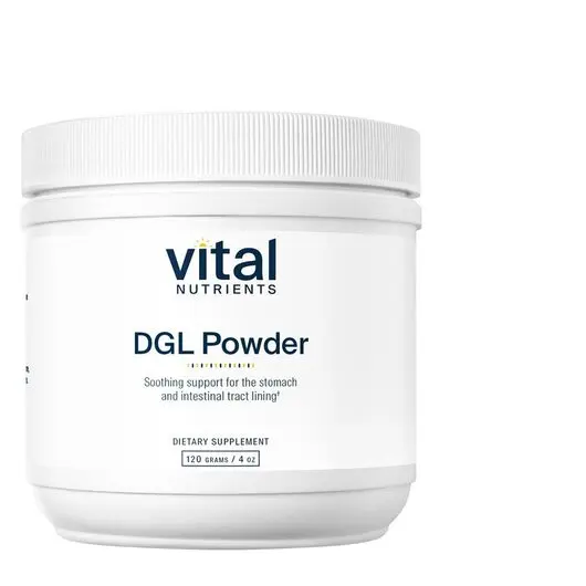 К сожалению, трудно съесть достаточное количество солодки, чтобы получить терапевтический эффект; в нем относительно много калорий и мало питательных веществ. Кроме того, корень солодки содержит вещество под названием глицирризин, которое может вызывать неприятные побочные эффекты, такие как вздутие живота и задержка воды. Порошок DGL от Vital Nutrients содержит деглицирризинированный корень солодки, что означает, что глицирризин удален.