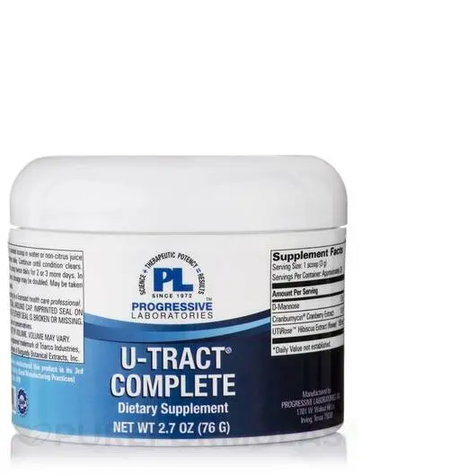 Рекомендуемый размер порции U-Tract Complete Powder от Progressive Labs — одна круглая мерная ложка, смешанная с любым нецитрусовым напитком, три-четыре раза в день. В каждом контейнере содержится 76 граммов (почти три унции) порошка.