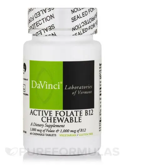 Жевательные таблетки Active Folate B12 сочетают в себе наиболее активные, стабильные и высокобиодоступные формы фолиевой кислоты (торговая марка Quatrefolic) и витамина B12 (метилкобаламин). Жевательная таблетка Active Folate B12 является наиболее стабильной, биодоступной и активной формой фолата и витамина B12. Он также рекомендуется для метилирования, здоровья клеток и детородного возраста/беременности. Жевательная таблетка Active Folate B12 является предпочтительной формой фолата для поддержания контроля уровня гомоцистеина, здоровья сердца и функции нервов.