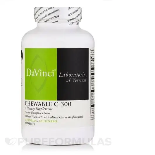 Ищете добавку витамина С, которой можно доверять, в удобной форме без капсул? Жевательные таблетки C-300 «Апельсин-Ананас» производятся компанией DaVinci Laboratories для поддержки вашей иммунной системы.