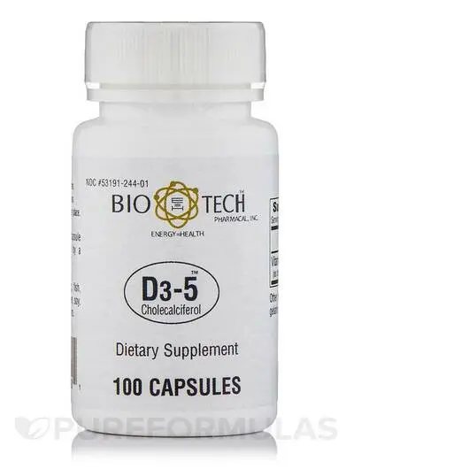 При стандартной дозировке одной капсулы в день каждой бутылки холекальциферола D3-5 от Bio-Tech Pharmacal на 100 капсул должно хватить более трех месяцев.
