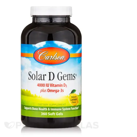 Solar D Gems — это добавка витамина D3 для тех, кто не получает достаточного количества витамина D3 с пищей или от солнца. Витамин D — это питательное вещество-суперзвезда, связанное со многими преимуществами для здоровья. Что делает его таким уникальным, так это то, что это витамин, который вы можете получить с пищей, а также гормон, который ваш организм вырабатывает под воздействием солнца. Несмотря на множество способов получения витамина D, многие из них все еще испытывают дефицит из-за смены времен года, солнцезащитного крема, цвета кожи, возраста и защиты от солнца. Solar D Gems также содержит важные омега-3 кислоты EPA и DHA, которые поддерживают здоровье сердца, мозга, зрения и суставов.