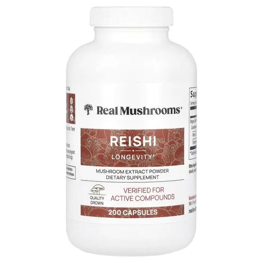 Real Mushrooms, Грибы Рейши, Reishi, 200 капсул