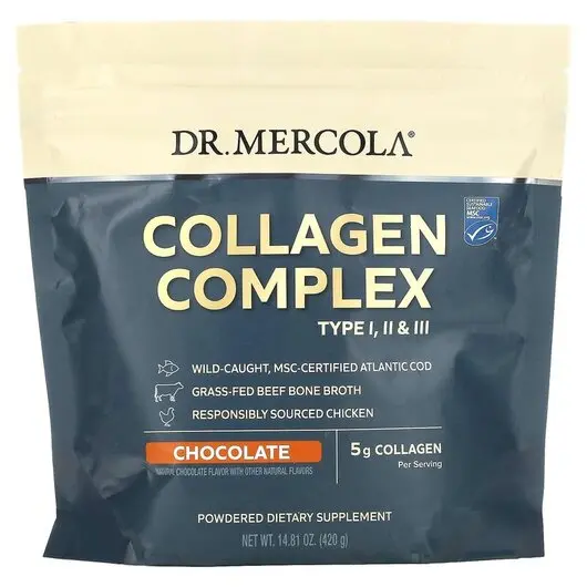 Добавки с эфирными маслами Essential Living Oils от Dr. Коллагеновый комплекс Mercola содержит пять граммов коллагена типов I, II и III в одной порции из бульона из говяжьих костей травяного откорма, атлантической трески, выловленной в дикой природе, сертифицированной MSC атлантической трески и курицы, полученной из ответственных источников. Мы заботимся о вашем здоровье, поэтому в состав этого уникального коллагена не входит ни одного грамма сахара в одной порции, а также не используются побочные продукты с высокой степенью переработки и искусственные подсластители, которые обычно присутствуют в других продуктах с коллагеном.