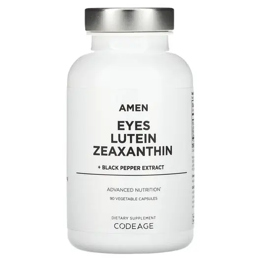 Капсулы добавки Amen Eyes содержат лютеин и зеаксантин из календулы для поддержания здорового зрения. Эти антиоксиданты находятся в макуле, центре сетчатки, отвечающем за детальное зрение. Эта формула также содержит корень красной свеклы и черный перец для поддержания здоровья глаз и повышения биодоступности питательных веществ.
