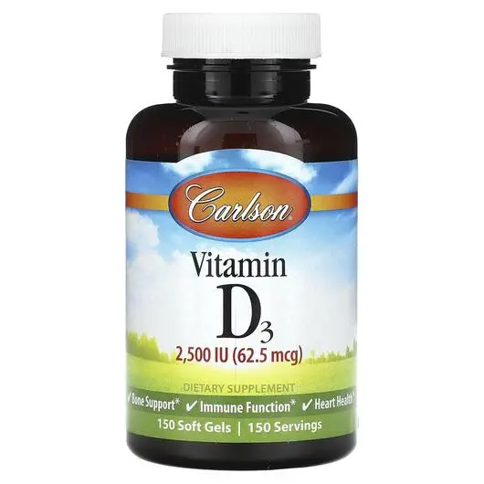 Витамин D3 Vitamin D3 62.5 mcg 2500 IU 150 капсул, Carlson