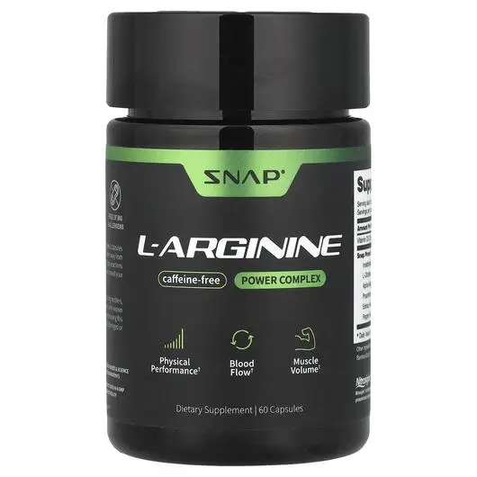 Snap Supplements, L-Аргинин, L-Arginine Caffeine-Free, 60 капсул