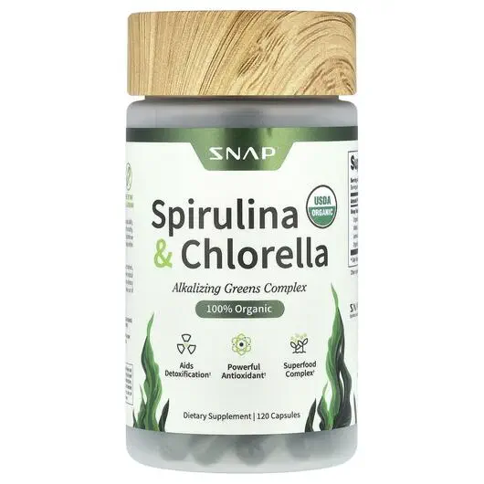 Snap Supplements, Спирулина, Organic Spirulina & Chlorella, 120 капсул