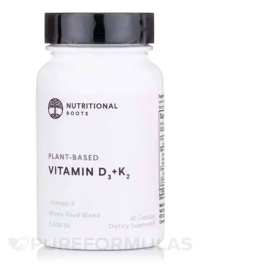 Nutritional Roots, Витамин D3, Plant-Based Vitamin D3+K2, 30 капсул