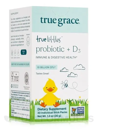Представляем целевые пробиотики True Grace, разработанные специально для True Littles. Эти пробиотики, созданные страстной мамой с миссией предоставить семьям богатые питательными веществами варианты, питают не только вашего ребенка, но и будущее.