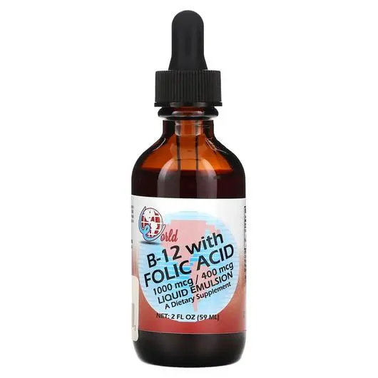 World Organic, Витамин B12 Кобаламин, B-12 With Folic Acid, 59 мл