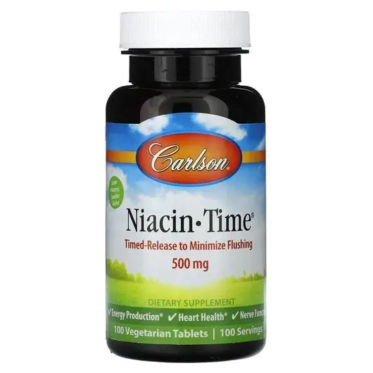 Carlson, Витамин B3 Ніацин, Niacin-Time 500 mg, 100 таблеток