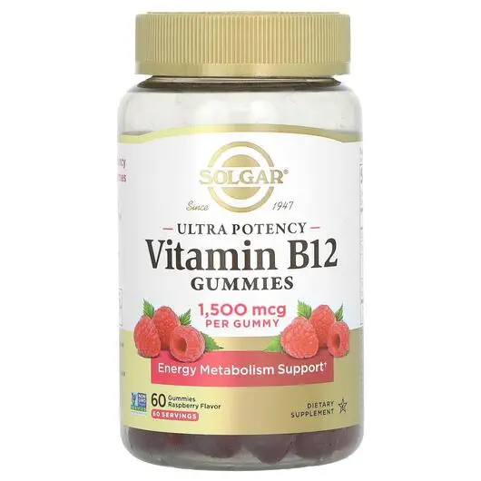 Метилкобаламин B12 Ultra Potency Vitamin B12 Gummies Raspberry 150 ... 60 таблеток, Solgar