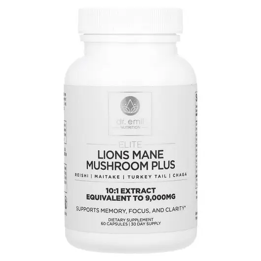 Грибы Elite Lions Mane Mushroom Plus 60 капсул, Dr Emil Nutrition