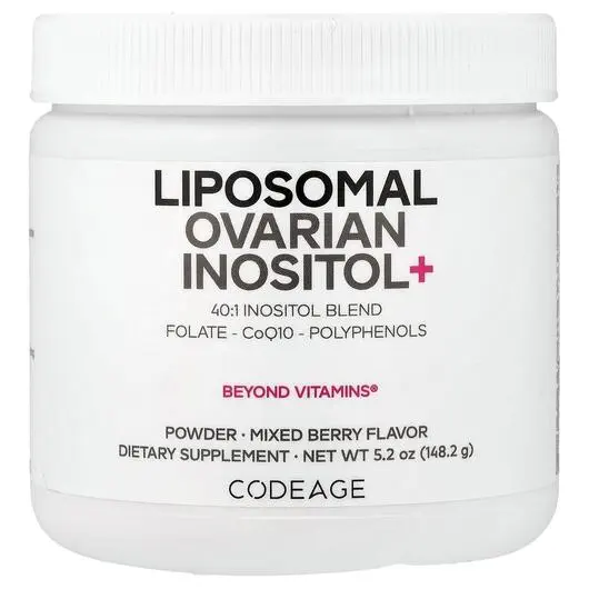 Порошок Codeage Liposomal Ovarian Inositol+ — это пищевая добавка, предназначенная для женщин, созданная для поддержания благополучия яичников и гормонального баланса за счет включения мио-инозитола, D-хиро-инозитола, фолата 5-MTHF, фитосомы CoQ10, экстрактов дикой черники и граната. . Имеет липосомальную доставку для абсорбции и биодоступности.